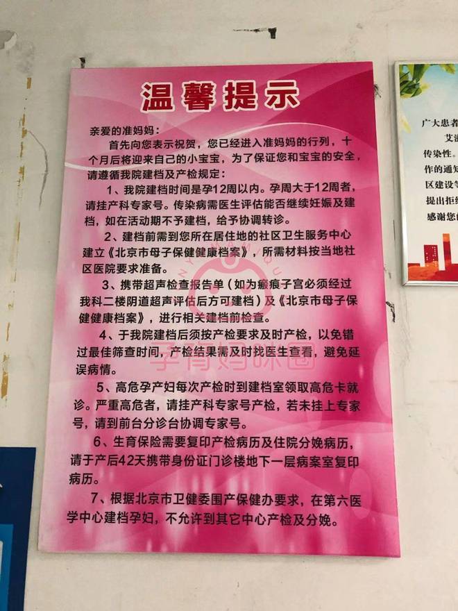 1、孕满6周后,到社区医院领取北京市母子手册
