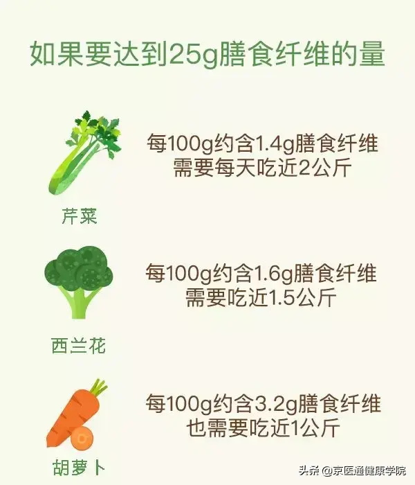 25g膳食纤维是多少?我们用一些常见的蔬菜来极限假设下: